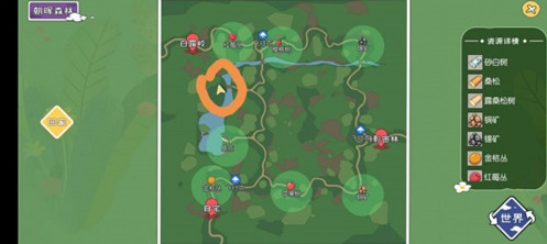 1.露桑松树一般分布在【朝晖森林】中,大致位置如下图: