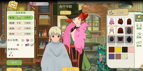 6.在理发店内,玩家可以更换发型、眼睛、妆容等,每更换一个需要消耗50粉钻/1张美容券。